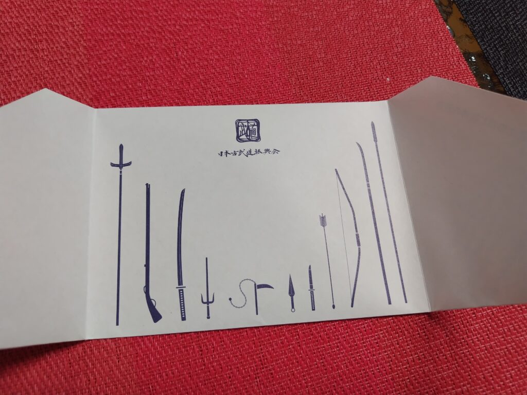 流派毎に入口にて「危険物持込許可証」(模擬槍、模擬刀、薙刀、小刀、木刀、竹刀 等に必要でした)を見せ、搬入する道具の点検を受けます。