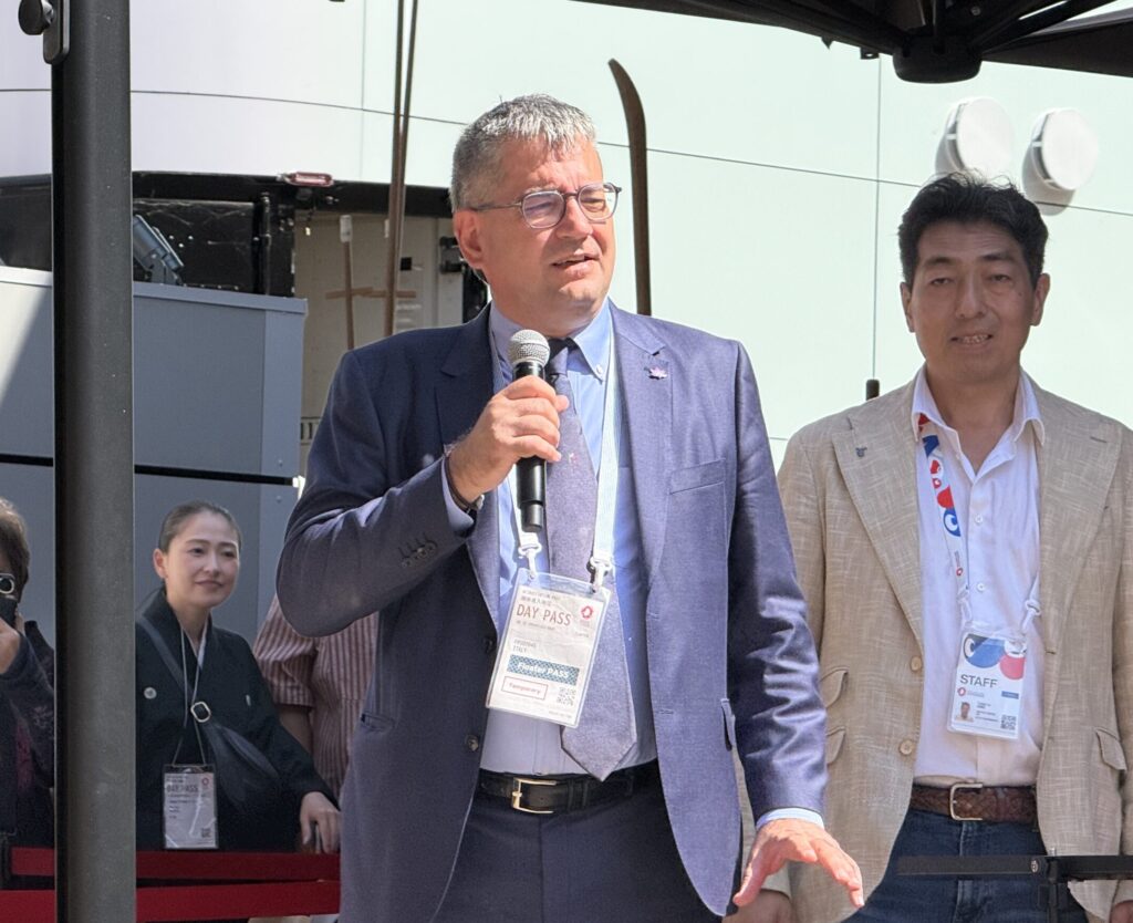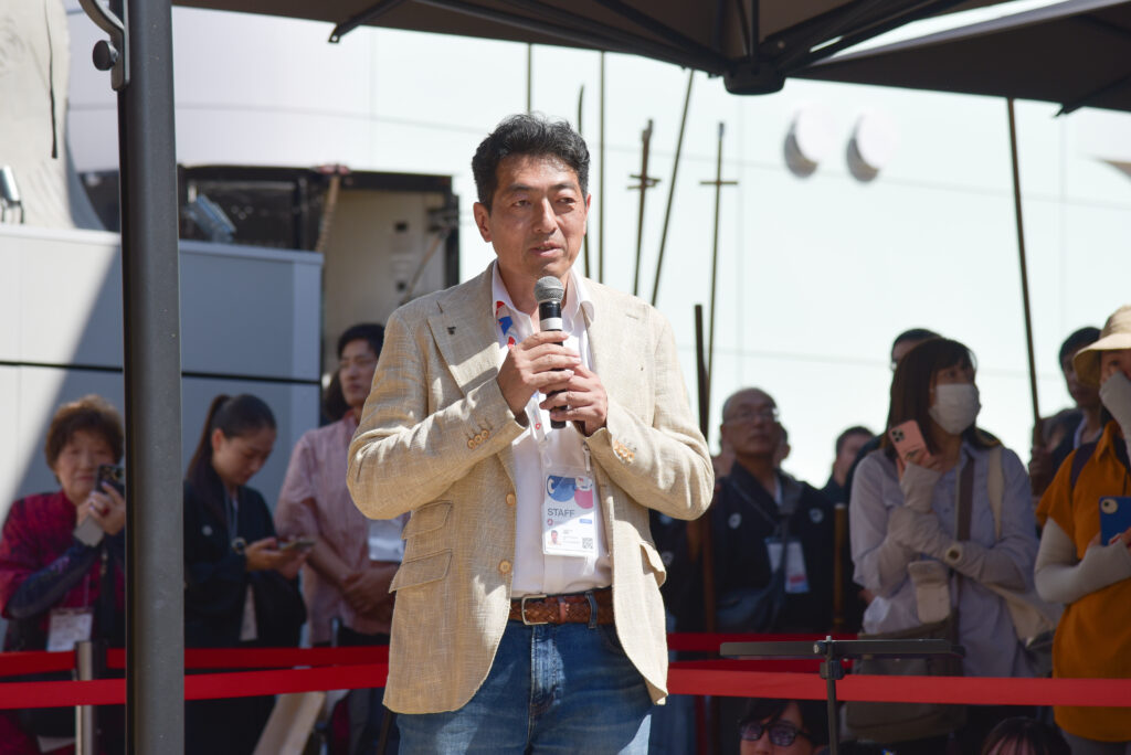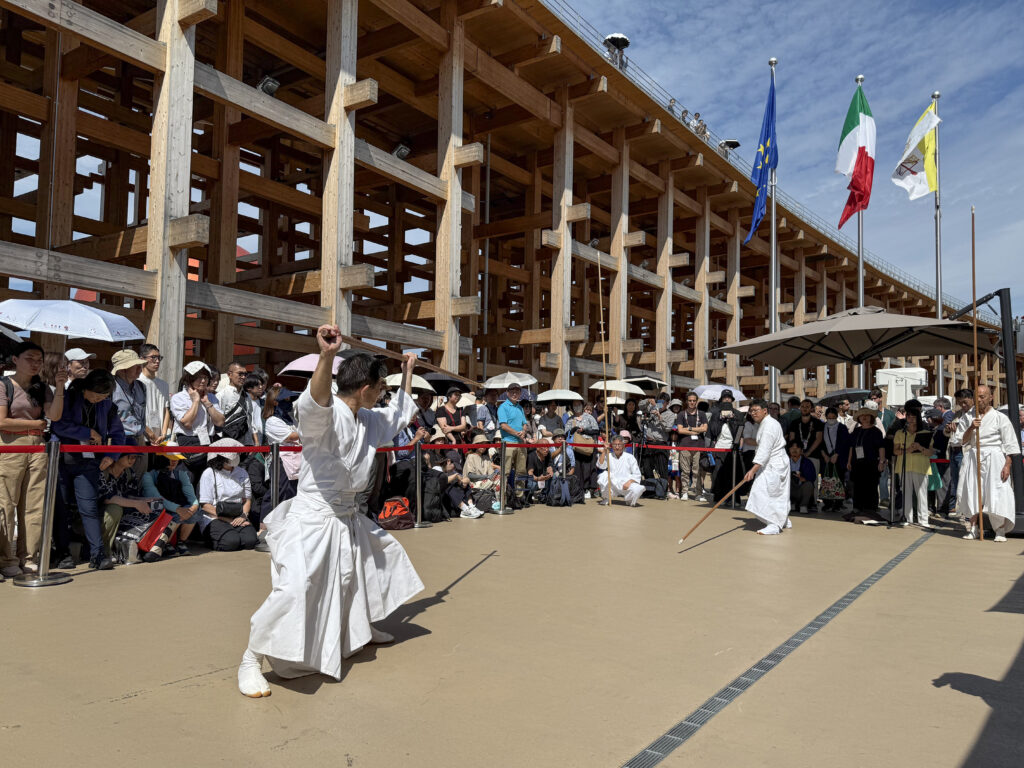 イタリア館前の演武では、冒頭、イタリア館のアンバサダーである近衞忠大氏(近衞家次期当主、デザイナー兼クリエイティブ・ディレクター)とイタリア代表委員会事務局長のアンドレア・マリン氏が開会の挨拶してくださいました。