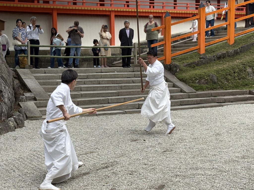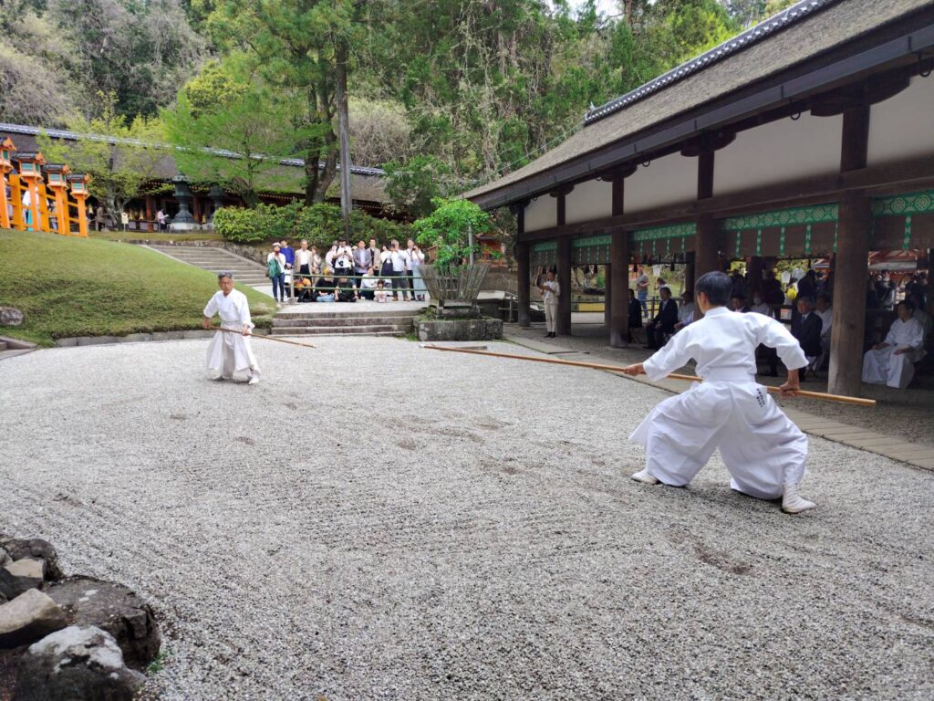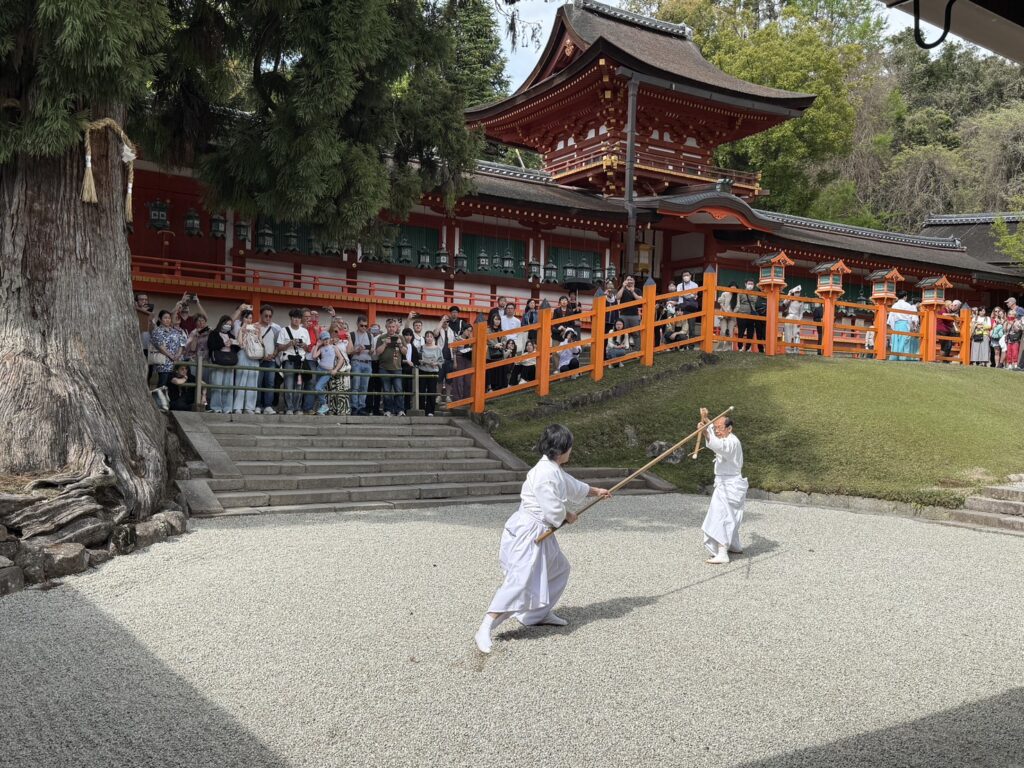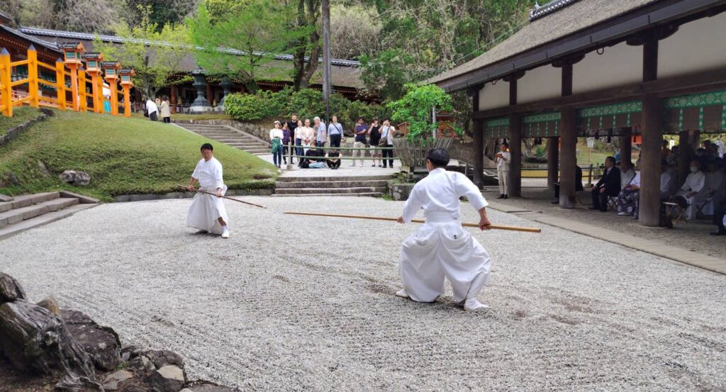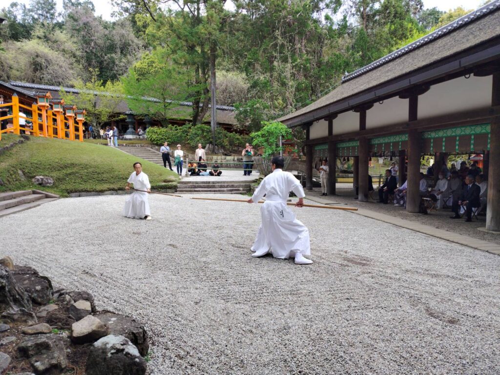 春日大社 御本殿前の「林檎の庭」で奉納演武を行いました。